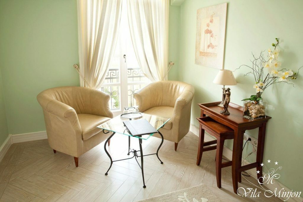 Soba je smeštena na prvom spratu i poseduje balkon sa garniturom za sedenje. Soba je za nepušače…